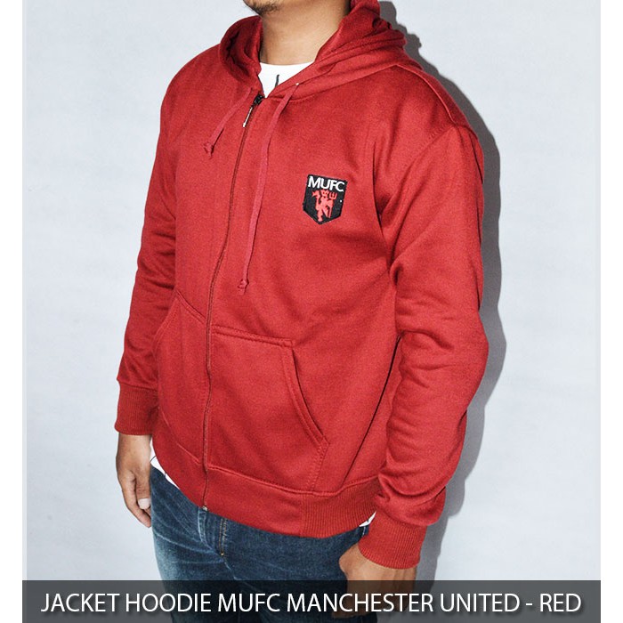 Jaket Sweater Hoodie Zipper Mufc Manchester United Red